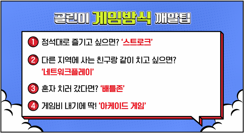 그렇다면 이번에는 스크린 골프를 다양하게 즐길 수 있는 모드들을 알아봐요!