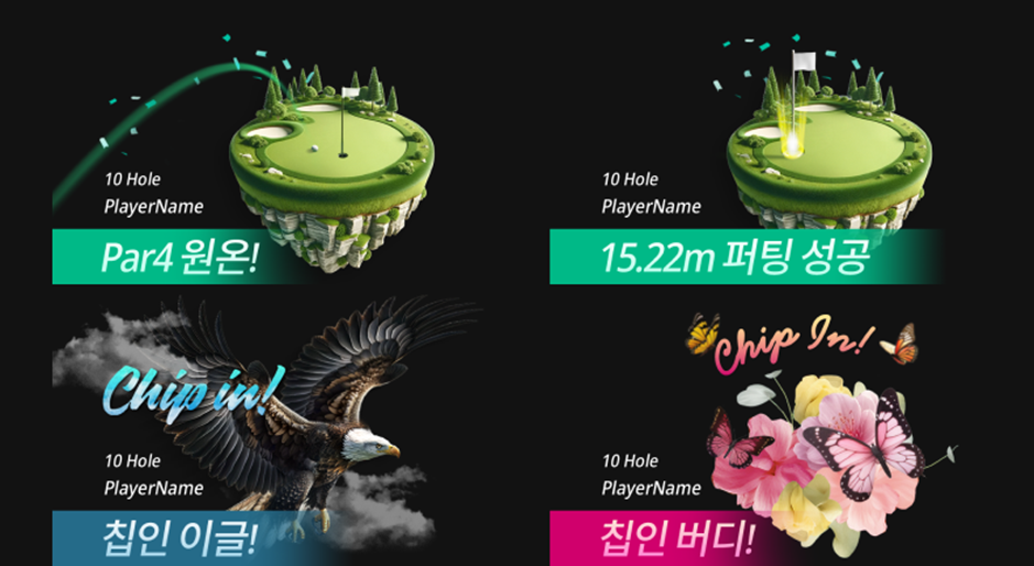 오!! 뭐야, 홀인원 했어?? 축하~축하!! 이글, 홀인원 시 다양한 셀러브레이션이 라이브 알림에 연출되어 동반자들이 확인 할 수 있습니다! 동반자들에게 축하를 받으며 끝까지 1등 가즈아~~