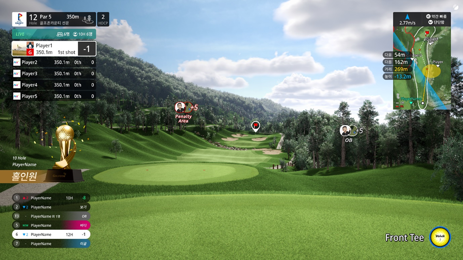 업그레이드된 투비전NX 네트워크 플레이는 동반자의 실시간 위치가 다 보입니다!! OB, Penalty Area 구역에 빠진 동반자가 아이콘으로 노출되어 동반자와 함께 즐기는 생생함이 UP! UP!