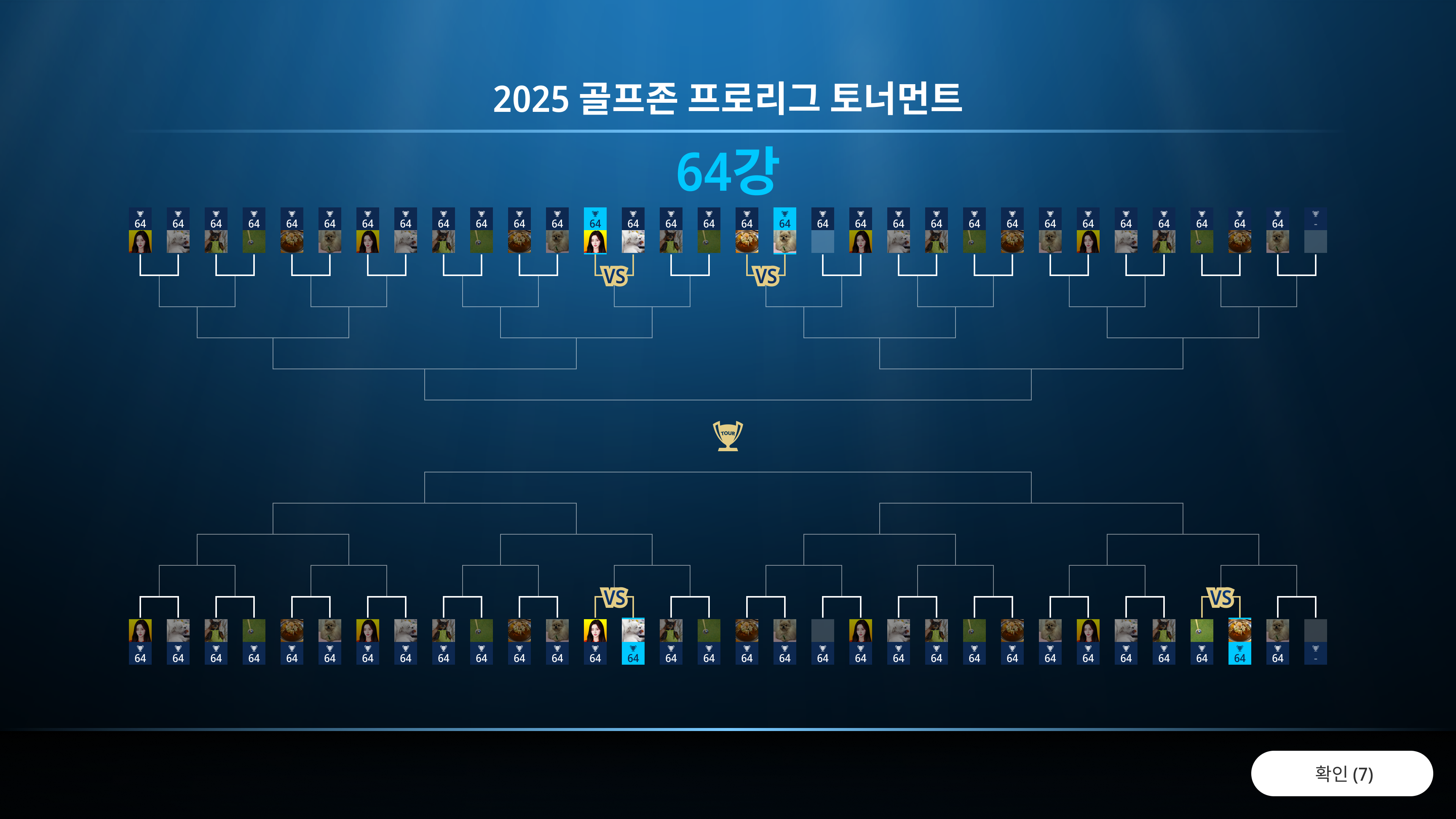 토너먼트 대회 예선 기간 동안의 코스 합산 최저타 기준으로 자동 컷오프됩니다. 개설자가 정한 대진방식에 의해 본선부터 결선까지 자동으로 진행 됩니다.