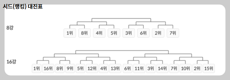▶ 시드 : 예선 성적 랭킹에 따라 대진이 결정되는 방식