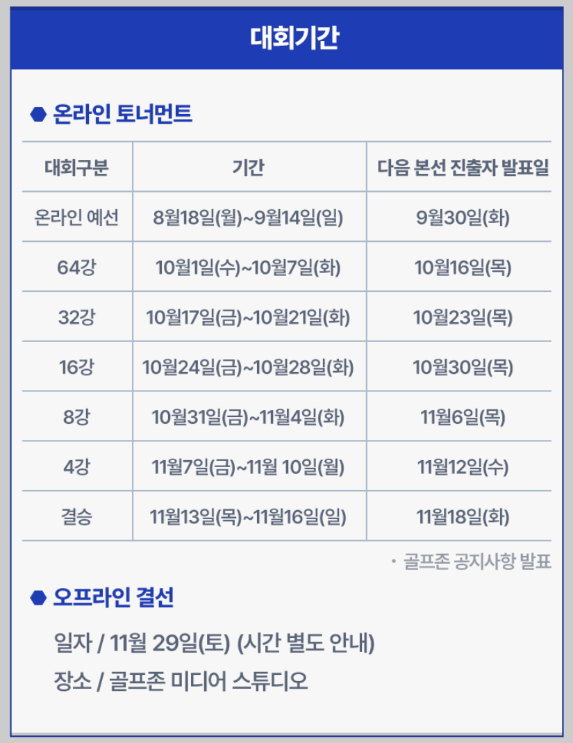 11월 16일(일) 각 프로의 64강 경기가 끝나면 11월 29일(토) 골프존 미디어 스튜디오에서