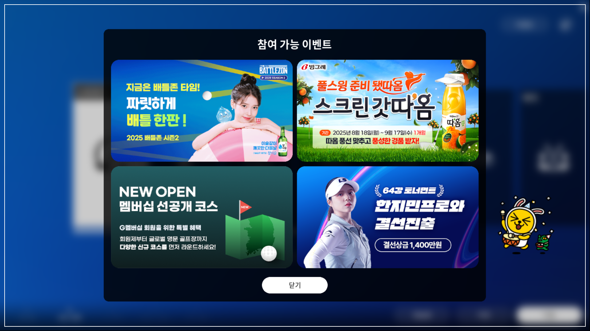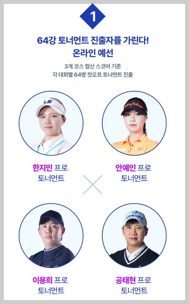 한지민 프로, 안예인 프로, 이용희 프로, 공태현 프로 중 좋아하는 선수들의 대회에 참여해보세요