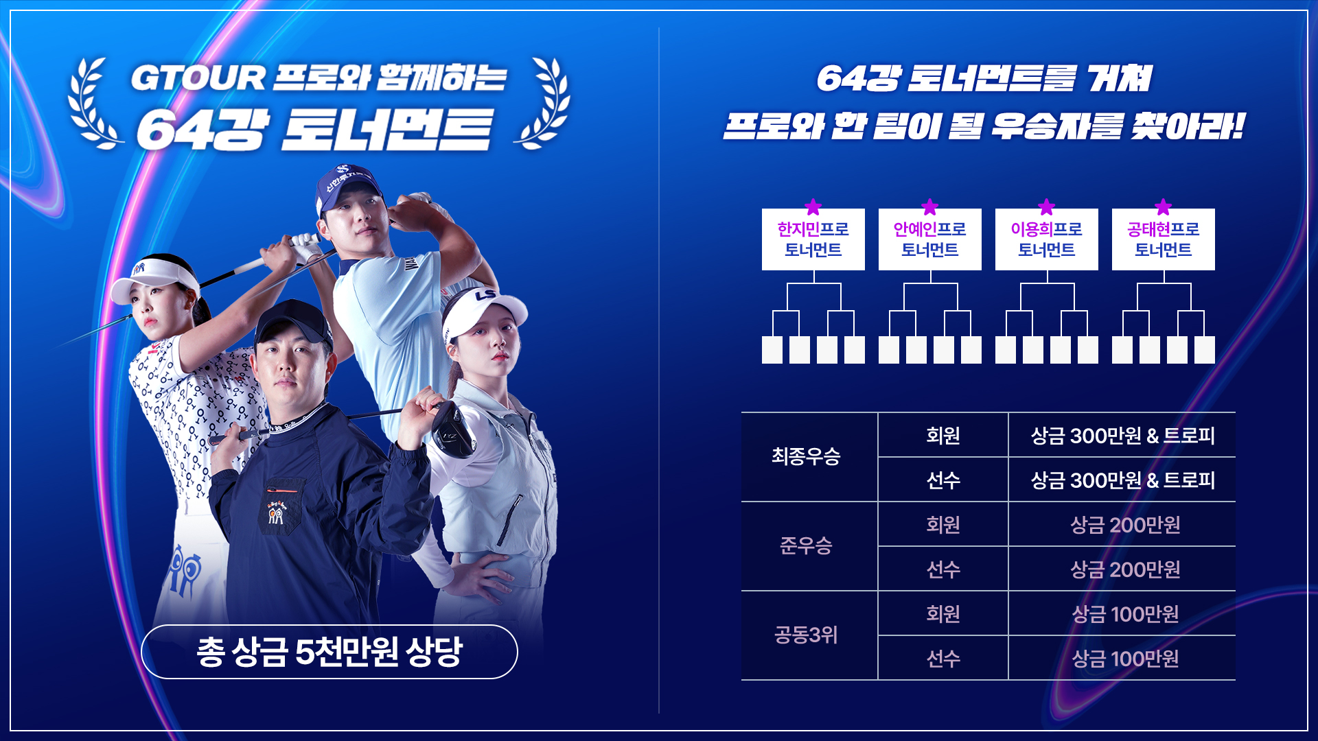 총 상금 5천만원에 달하는 GTOUR프로와 함께하는 64강 토너먼트 대회!