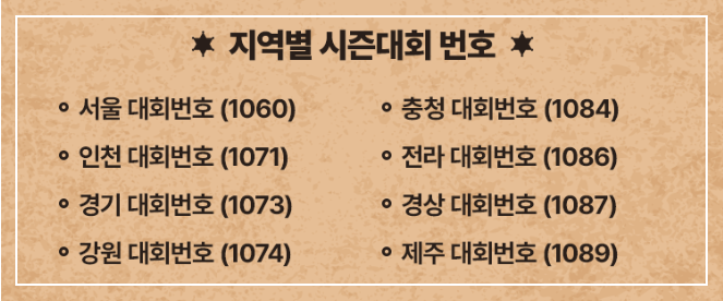 다른 지역 대회를 참여하면 랭킹에 등재되지 않으니 이점 유의해주세요!