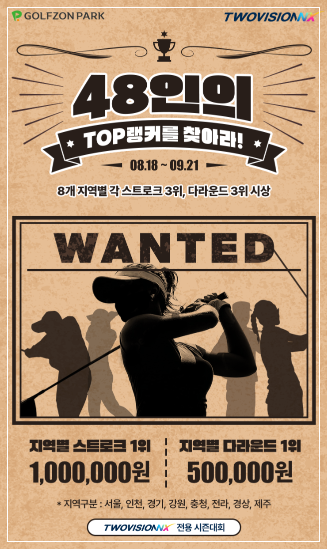 8월 18일부터 9월 21일까지 5주간 서울, 경기, 인천, 강원, 충청, 전라, 경상, 제주 8개 지역별로 진행되는 대회 입니다. 이 대회는 1차부터 4차까지 4차전 대회를 하나의 시즌으로 묶어 운영하는 통합형 대회로, 다양한 코스에서의 우수한 성적과 꾸준한 라운드가 성패를 좌우해 색다른 재미를 선사합니다.
