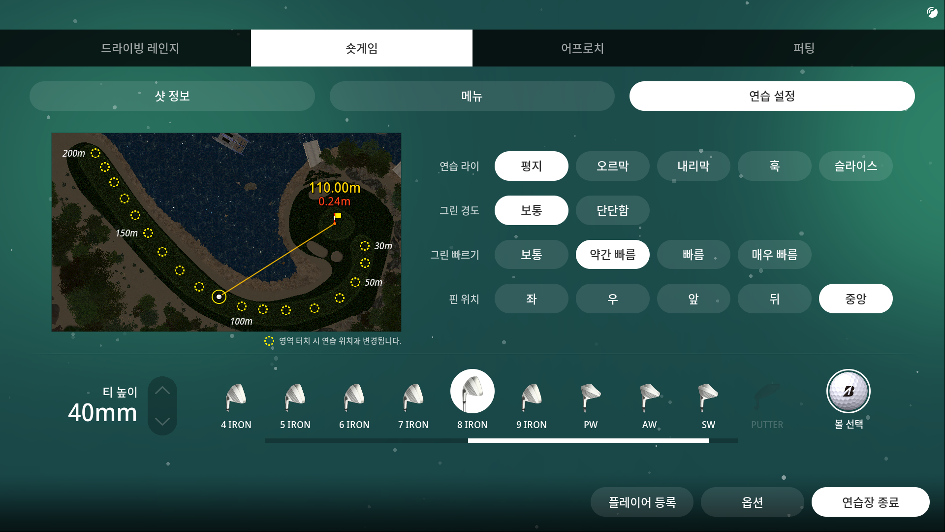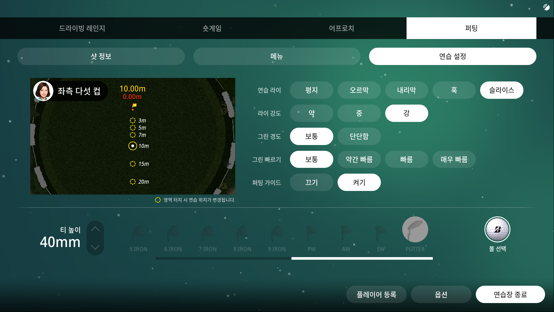 세밀함이 요구되는 퍼팅 연습을 위해 세밀한 세팅이 가능해집니다.
