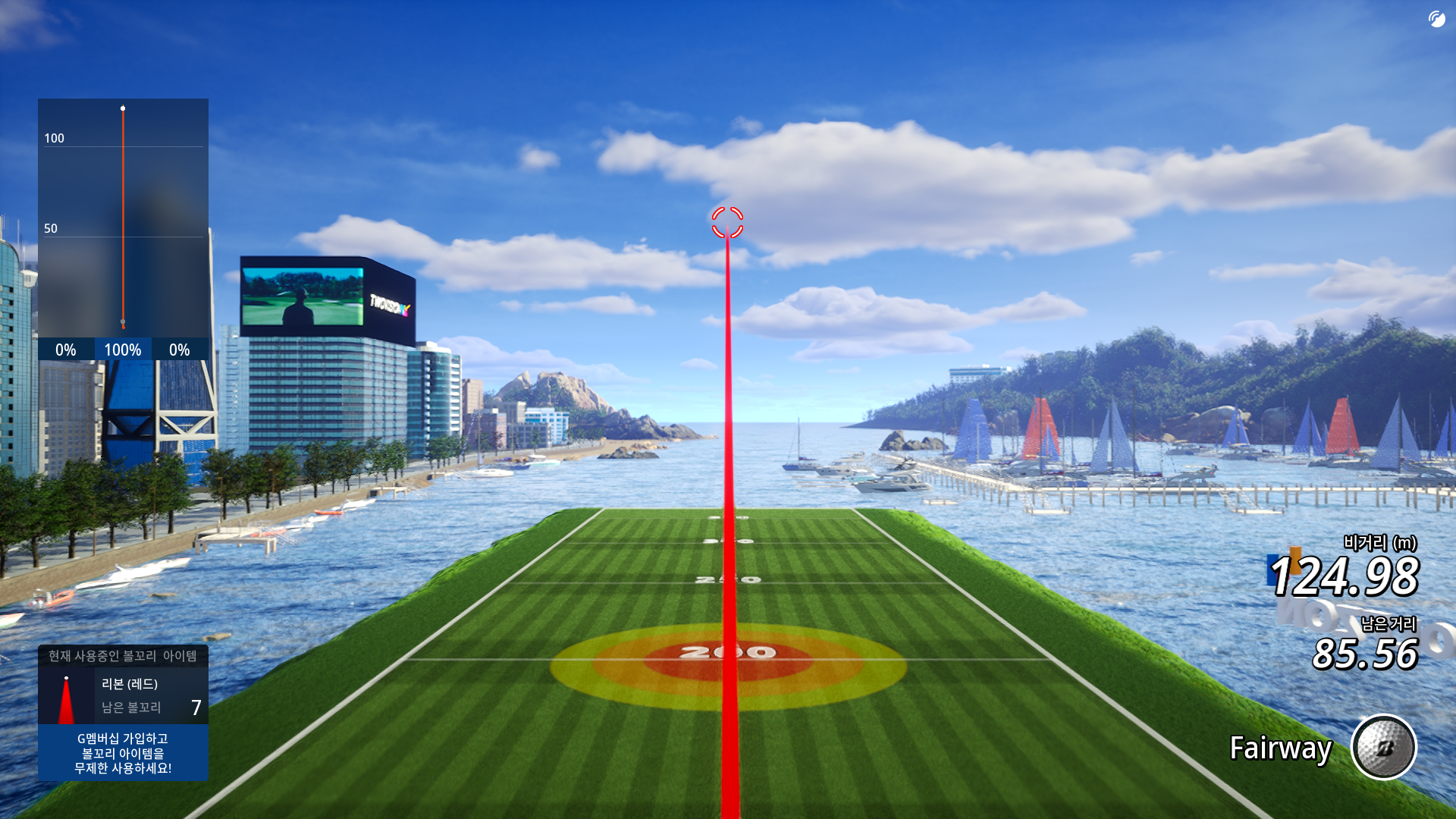 탁 트인 오션뷰를 배경으로 하는 드라이빙 레인지.