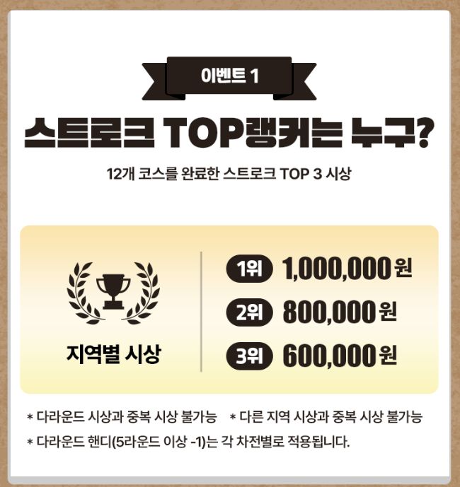 시상은 지역별 스트로크 및 다(多) 라운드 TOP랭커 TOP 3 시상으로 마련됐습니다.