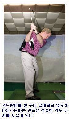 백스윙 후 다운스윙할 때는 각도 유지가 중요하다.
